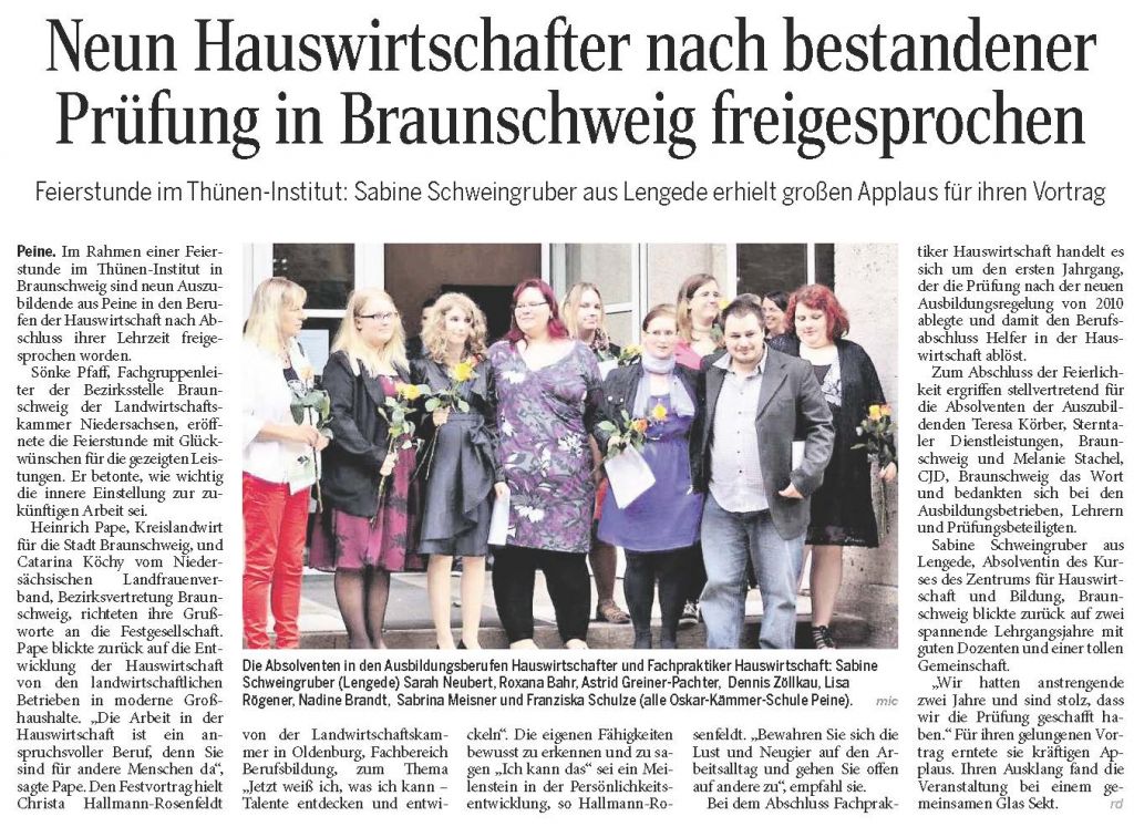 PAZ: "Neun Hauswirtschafter nach bestandener Prüfung in Braunschweig freigesprochen"