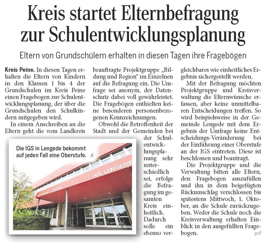 PAZ: "Landesschulbehörde genehmigt Oberstufe an der IGS Lengede"