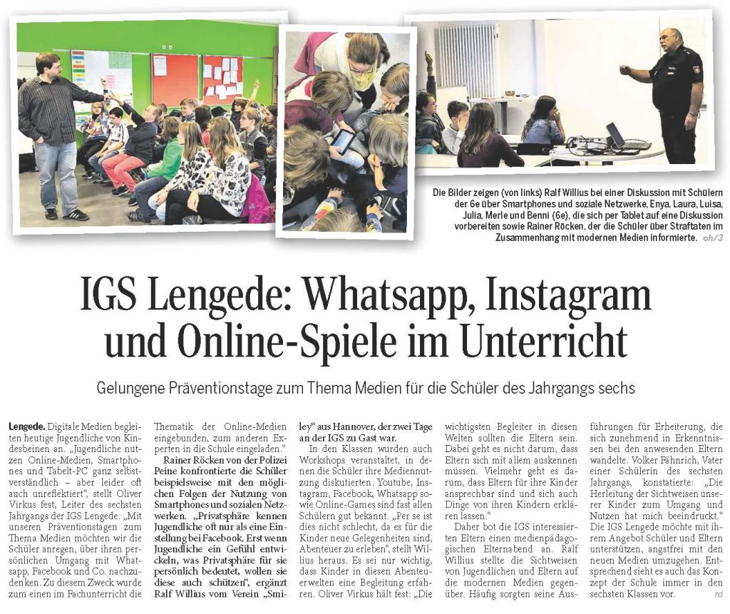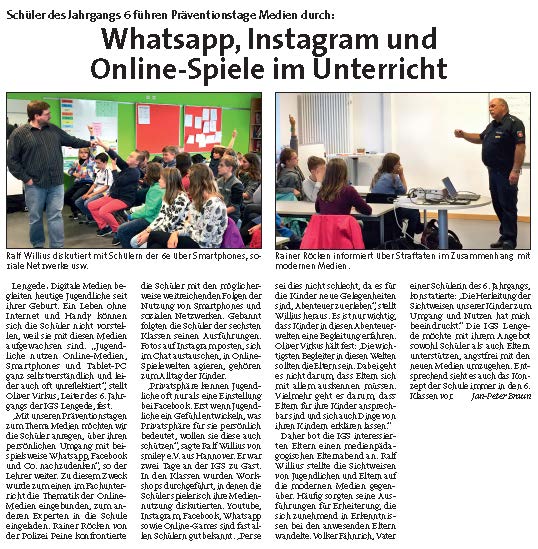 PAZ: " IGS Lengede: Whatsapp, Instagram und Online-Spiele im Unterricht"