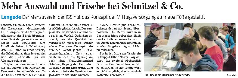 PAZ: "Neues Mensateam der IGS Lengede zieht eine positive Zwischenbilanz"