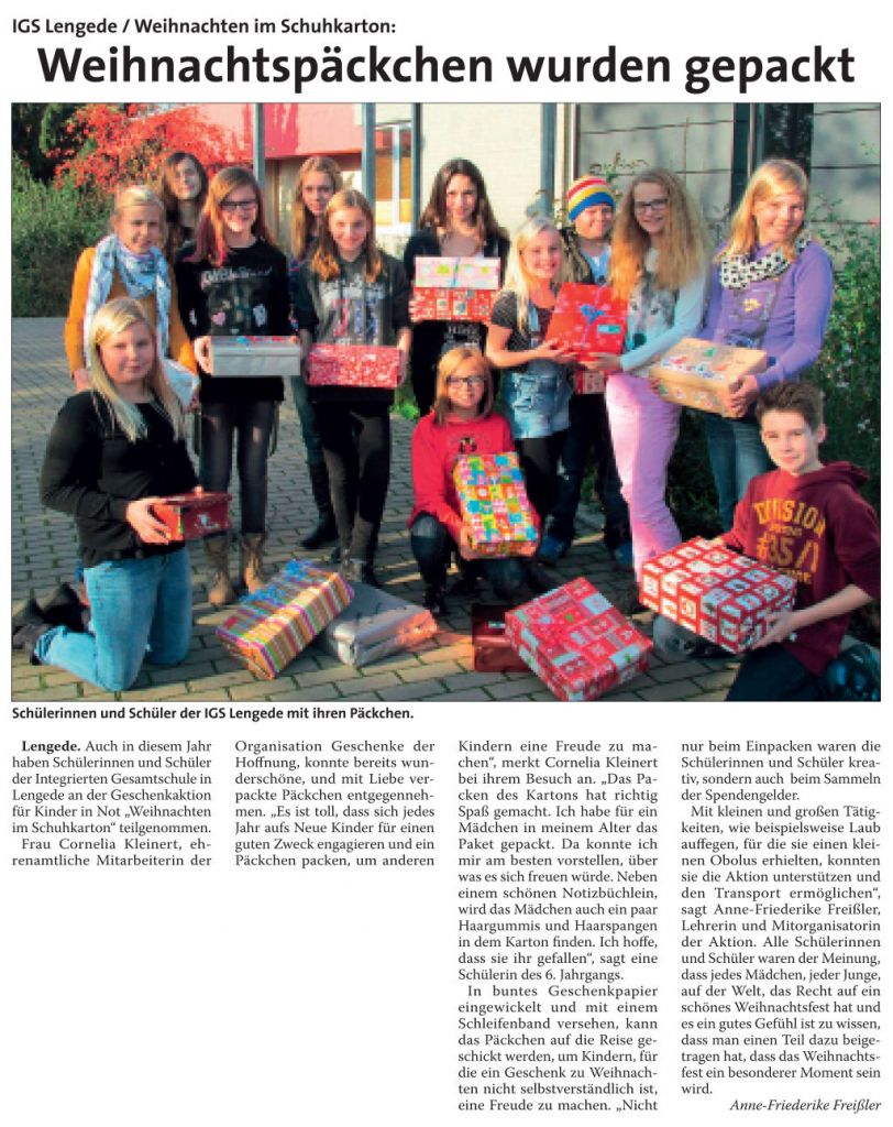 PAZ: "Schülerinnen und Schüler der IGS Lengede packten die ersten Weihnachtspäckchen"