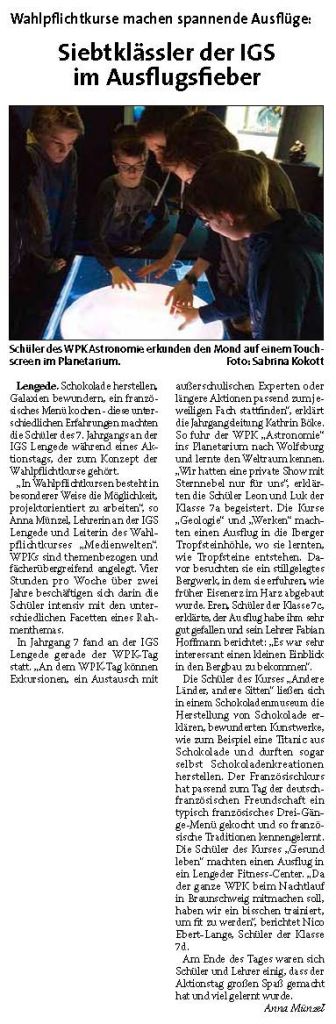 GAL: "Siebtklässler der IGS im Ausflugsfieber"