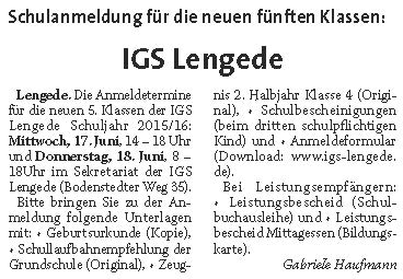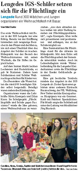 PN: "Lengedes IGS-Schüler setzen sich für die Flüchtlinge ein"