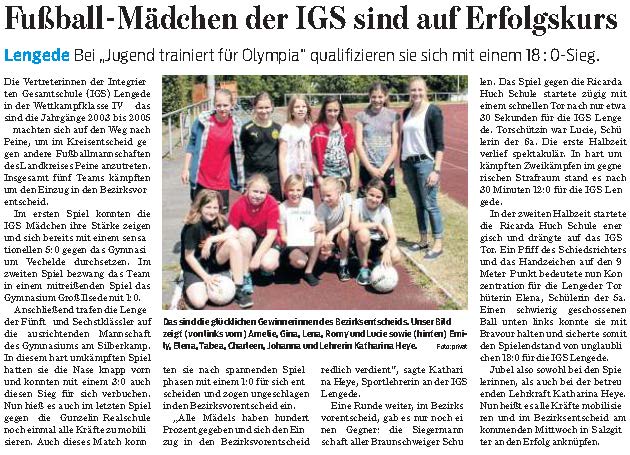PN: "Fußball-Mädchen der IGS sind auf Erfolgskurs"