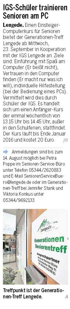 PAZ: "IGS-Schüler trainieren Senioren am PC"