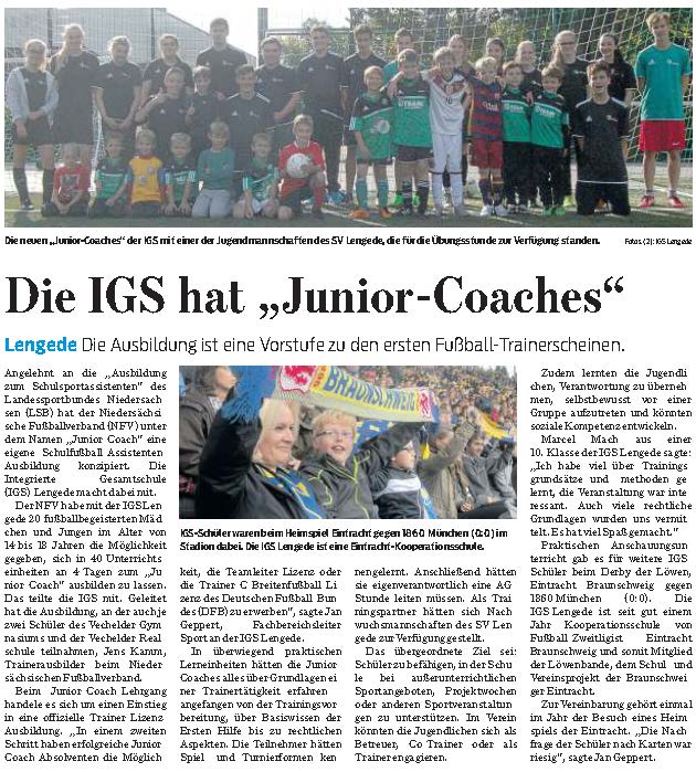 PAZ: "Trainerausbildung zum „Junior Coach“ lief erstmals an der IGS Lengede"