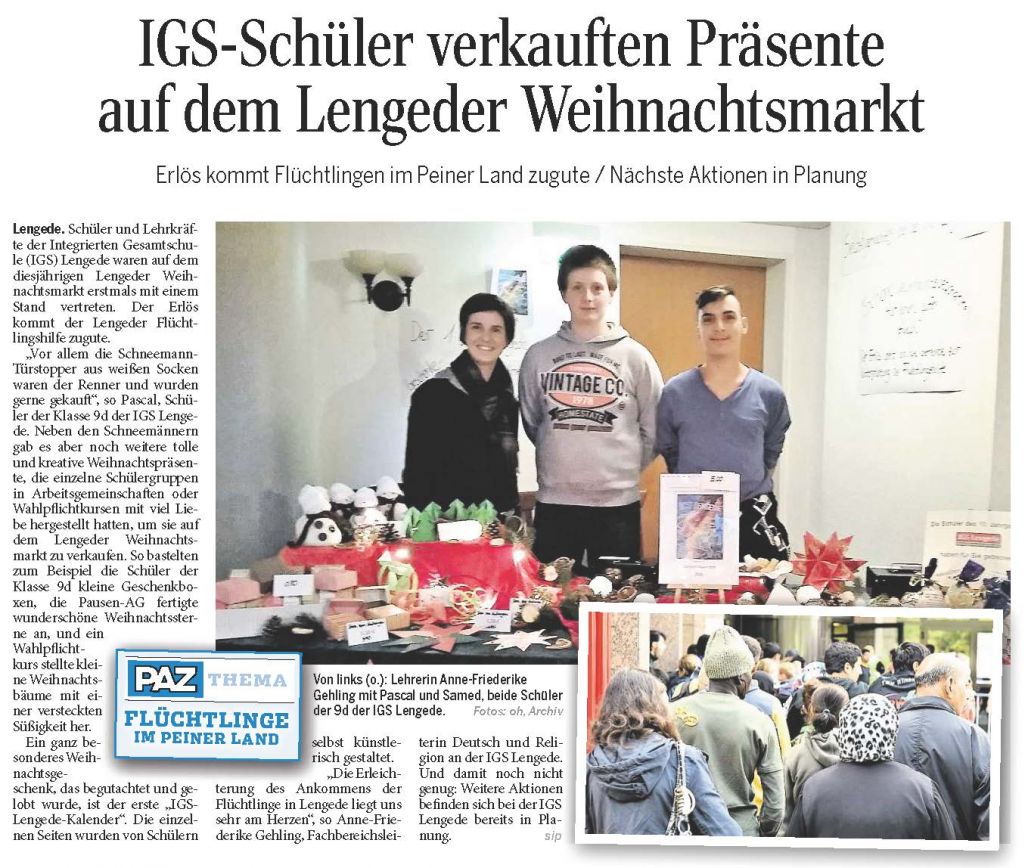 PAZ: "IGS-Schüler verkauften Präsente auf dem Lengeder Weihnachtsmarkt"