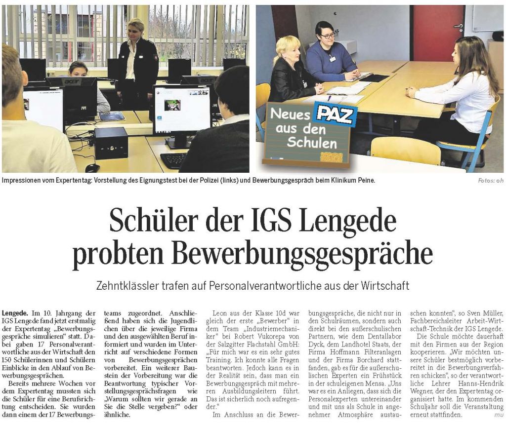 PAZ: "Schüler der IGS Lengede probten Bewerbungsgespräche"