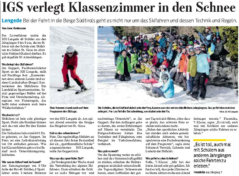 PN: "IGS verlegt Klassenzimmer in den Schnee"