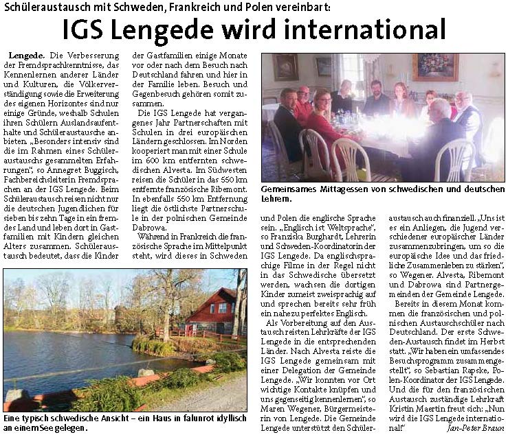 GAL: "Erster Schwedenaustausch der IGS Lengede"