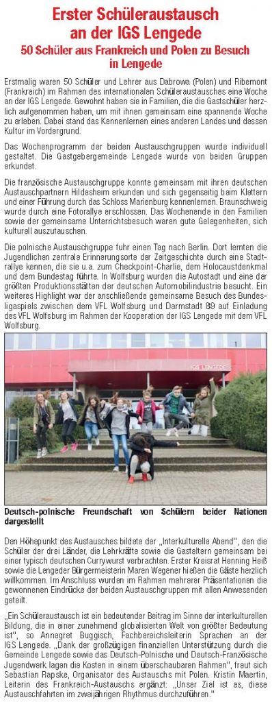 PAZ: "Erster Schüleraustausch an der IGS Lengede"