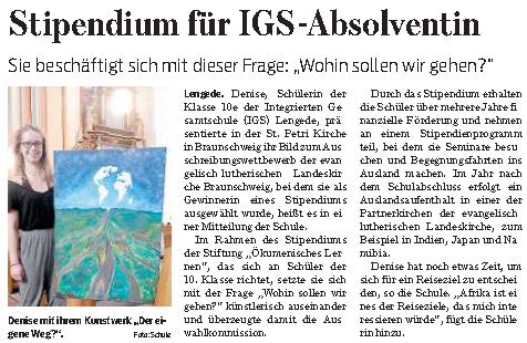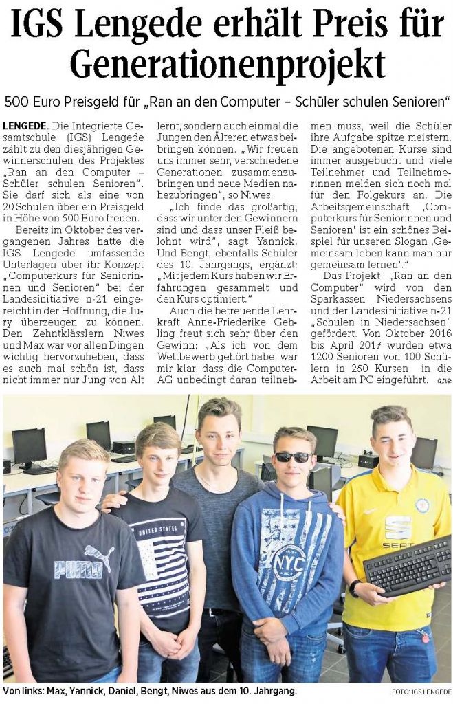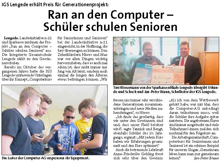PAZ: "IGS Lengede erhält Preis für Generationenprojekt"