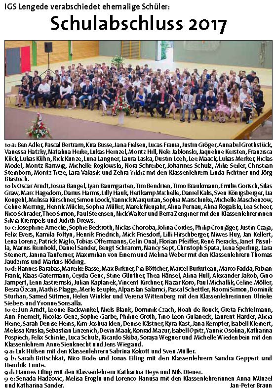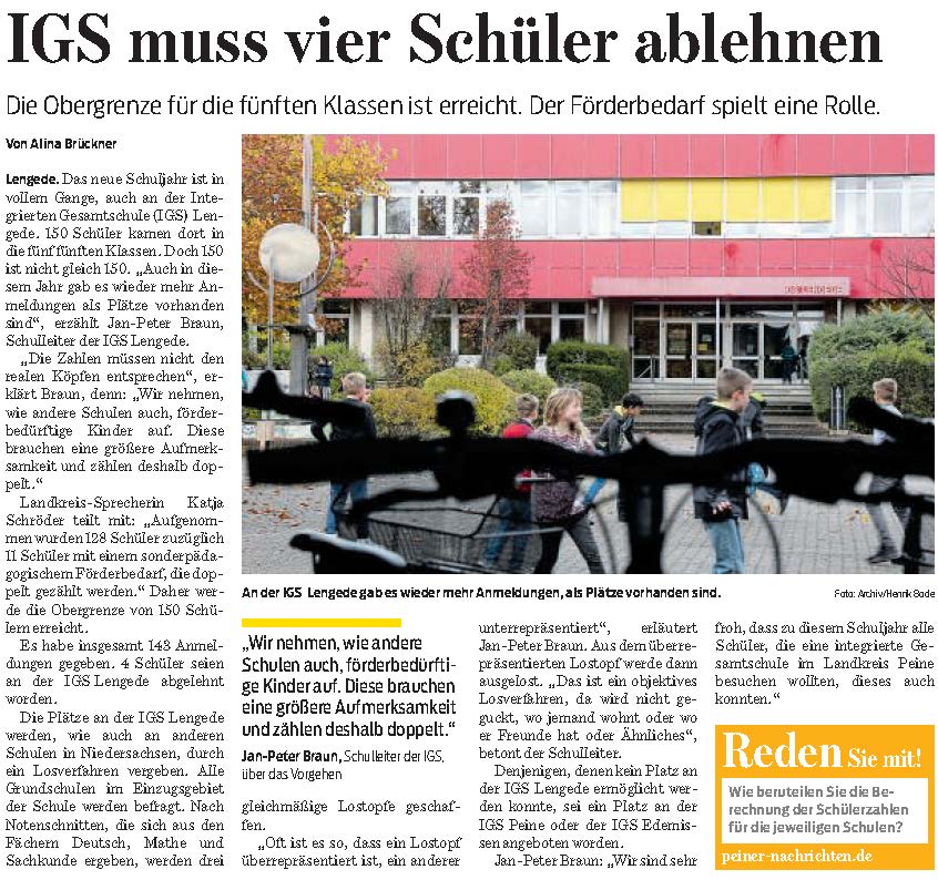 RSB: "Anmeldetermine für die neuen 5. Klassen der IGS Lengede Schuljahr 2017/2018"