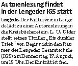 PN: "Autorenlesung findet in der Lengeder IGS statt"