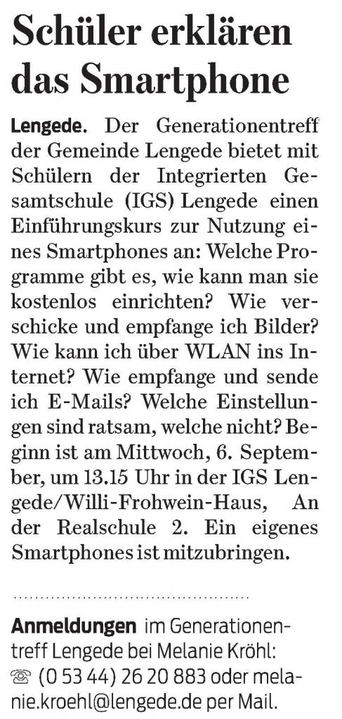 HWSZ: "Schüler-Austausch: Premiere an der IGS"