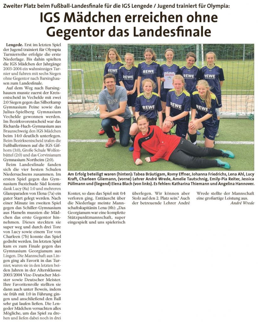 GAL: "IGS Mädchen erreichen ohne Gegentor das Landesfinale"