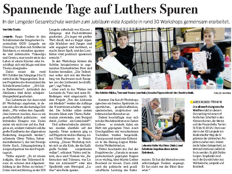 PAZ: "IGS-Schüler begaben sich auf die Spuren von Martin Luther"