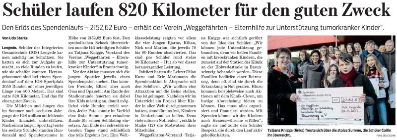PN: "Schüler laufen 820 Kilometer für den guten Zweck"