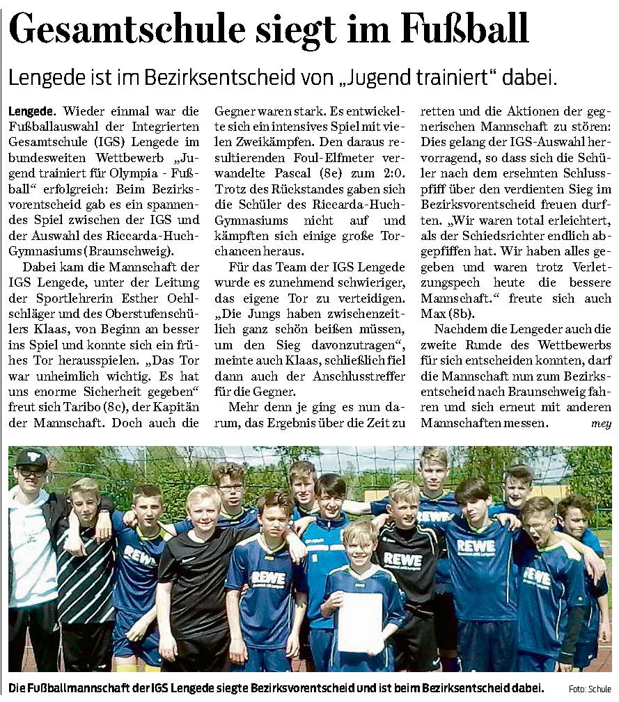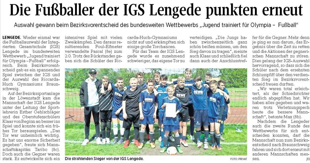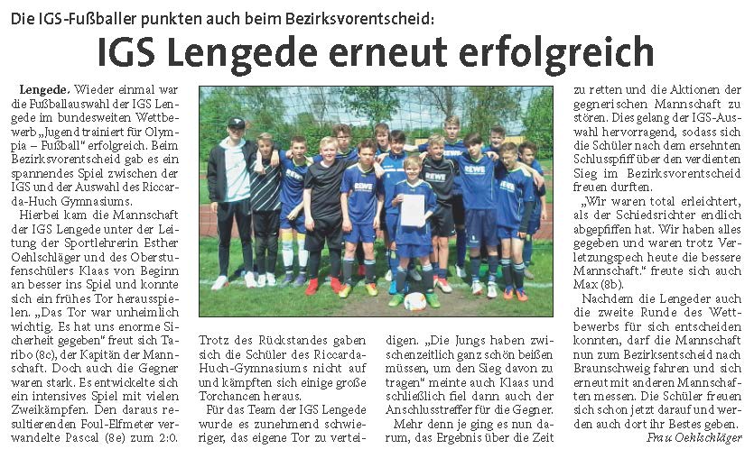 PAZ: "Die Fußballer der IGS Lengede punkten erneut"