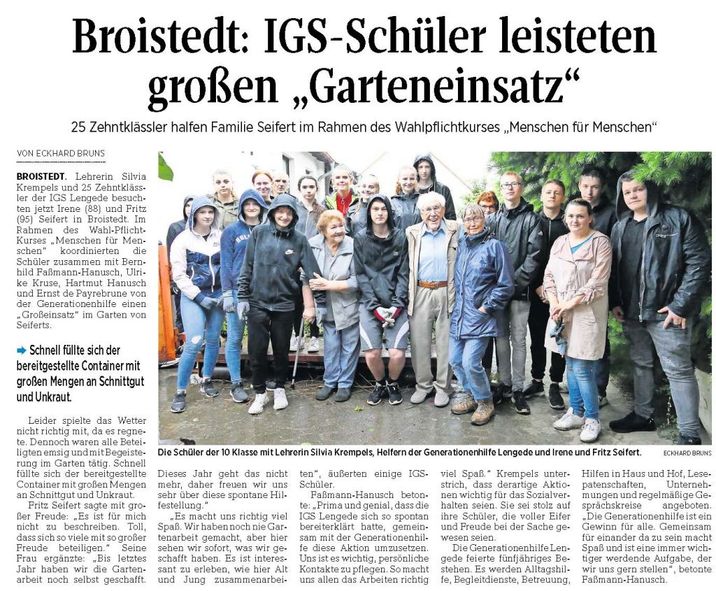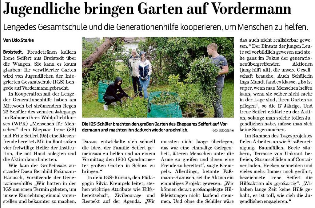 PAZ: "Broistedt: IGS-Schüler leisteten großen „Garteneinsatz“"