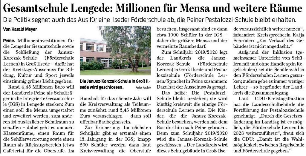PN: "Gesamtschule Lengede: Millionen für Mensa und weitere Räume"