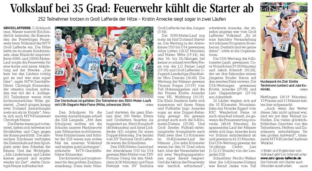 PAZ: "Volkslauf bei 35 Grad: Feuerwehr kühlt die Starter ab"