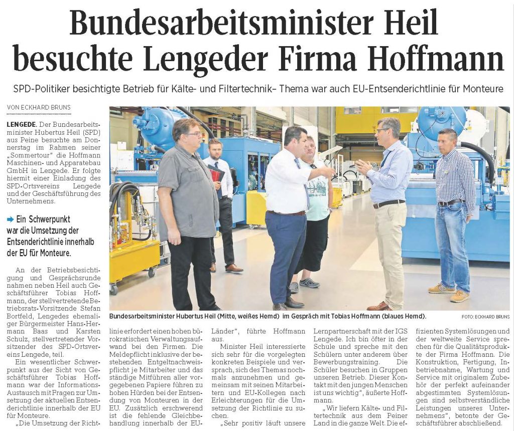 PAZ: "Bundesarbeitsminister Heil besuchte Lengeder Firma Hoffmann"