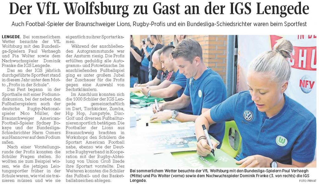 PAZ: "Der VfL Wolfsburg zu Gast an der IGS Lengede"