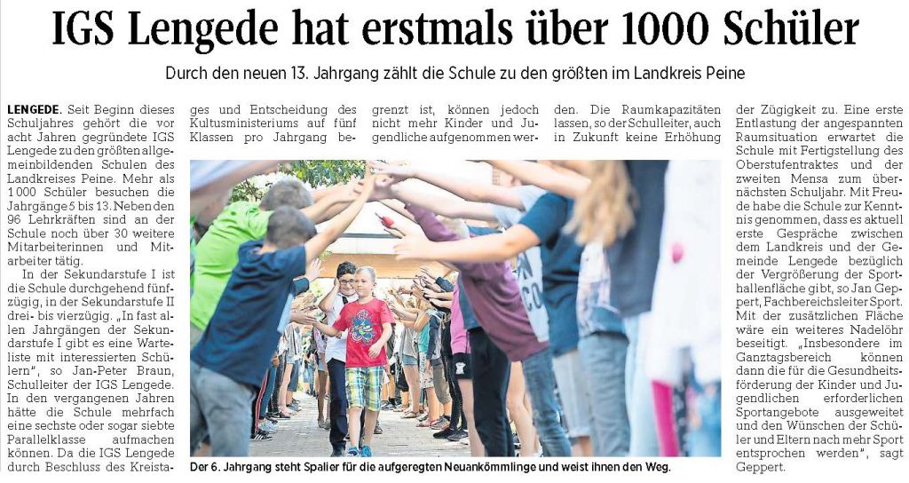 PAZ: "IGS Lengede hat erstmals über 1000 Schüler"