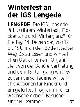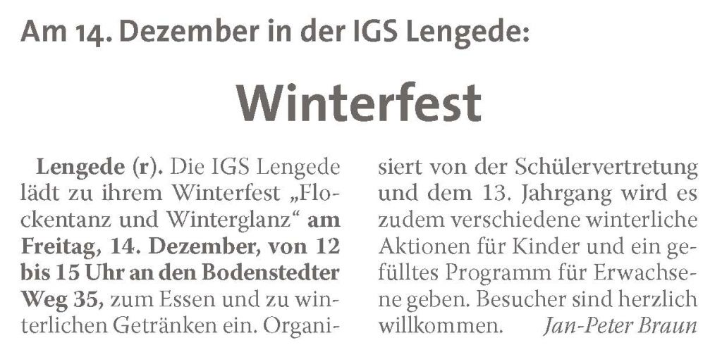 PN: "Schüler der IGS gestalten ein Winterfest"