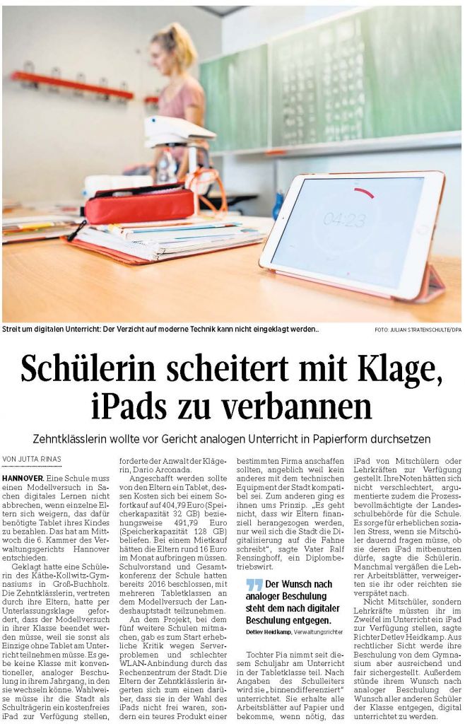 PAZ: "Schülerin scheitert mit Klage, iPads zu verbannen"