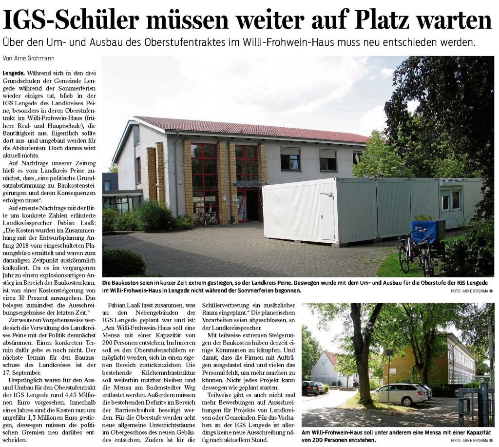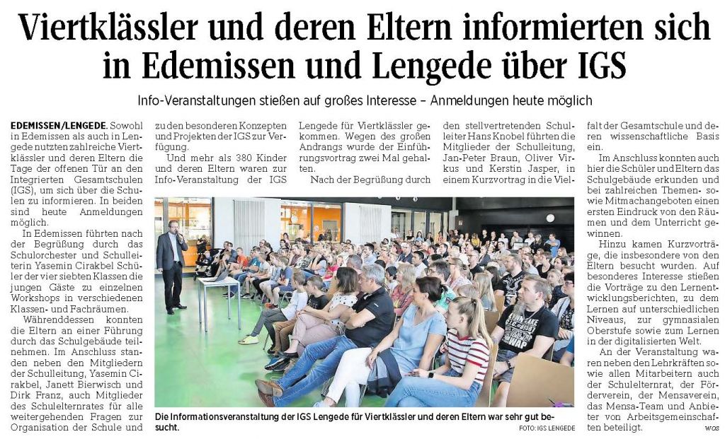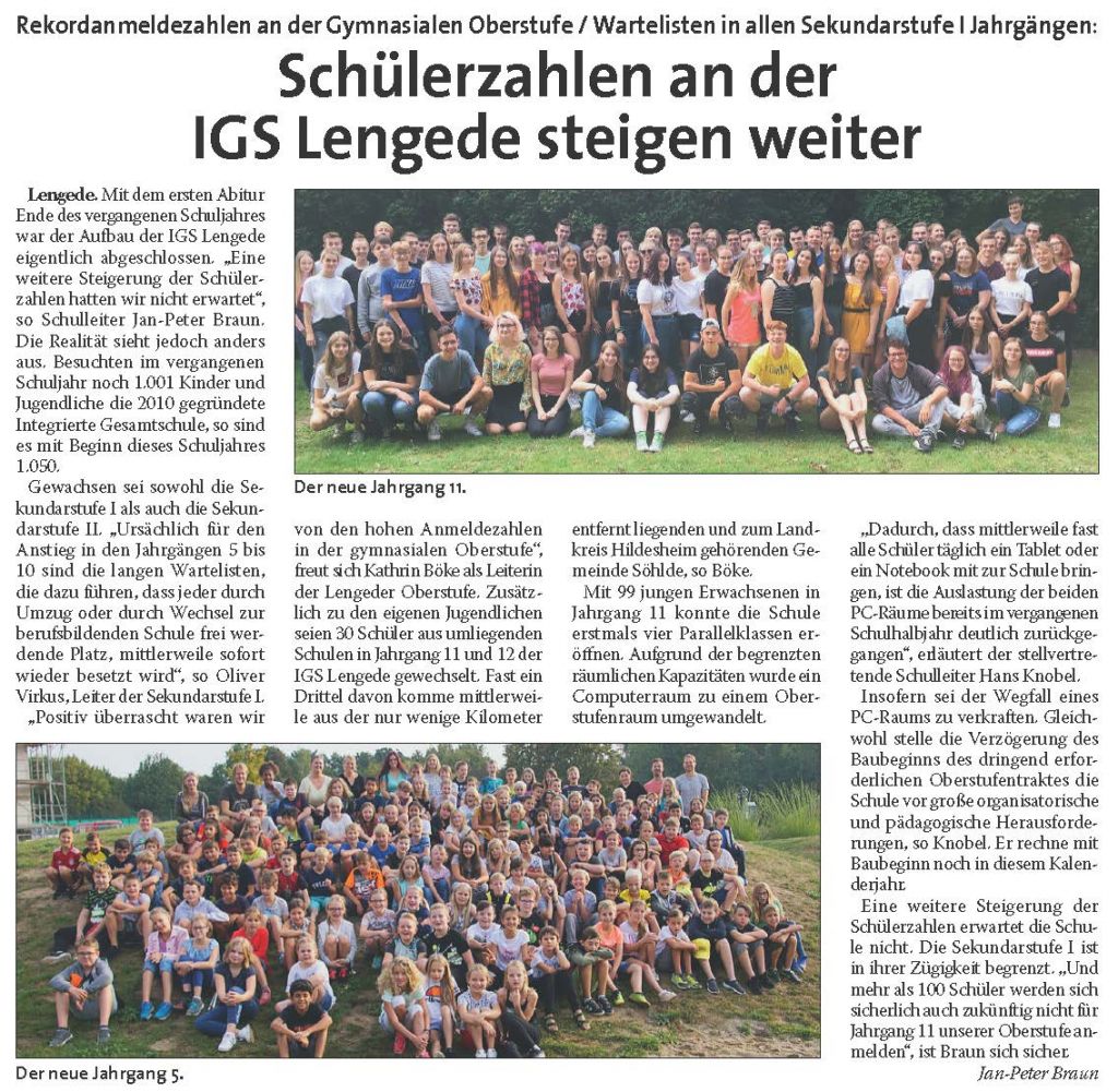 PN: "IGS Lengede freut sich: Schüler-Rekordzahl"