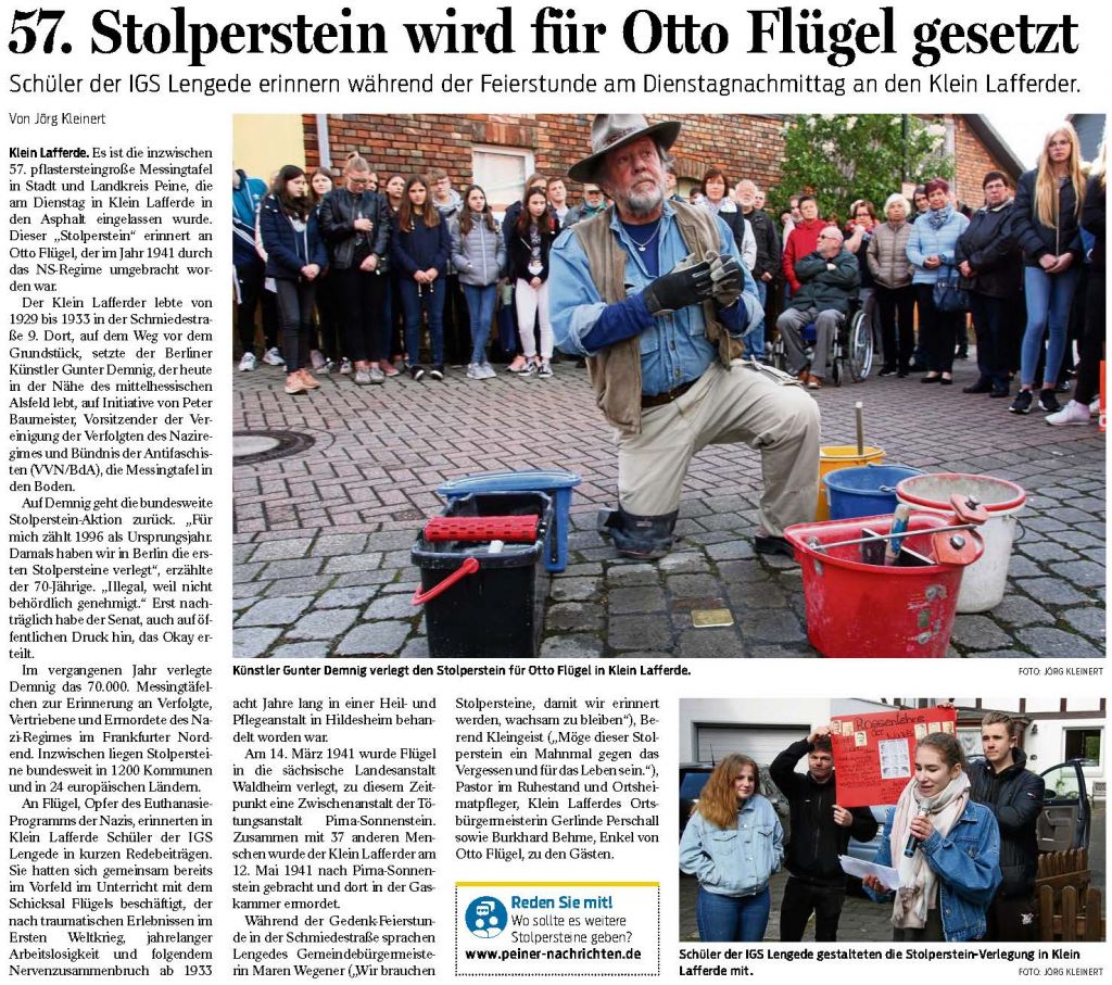 PN: "57. Stolperstein wird für Otto Flügel gesetzt"