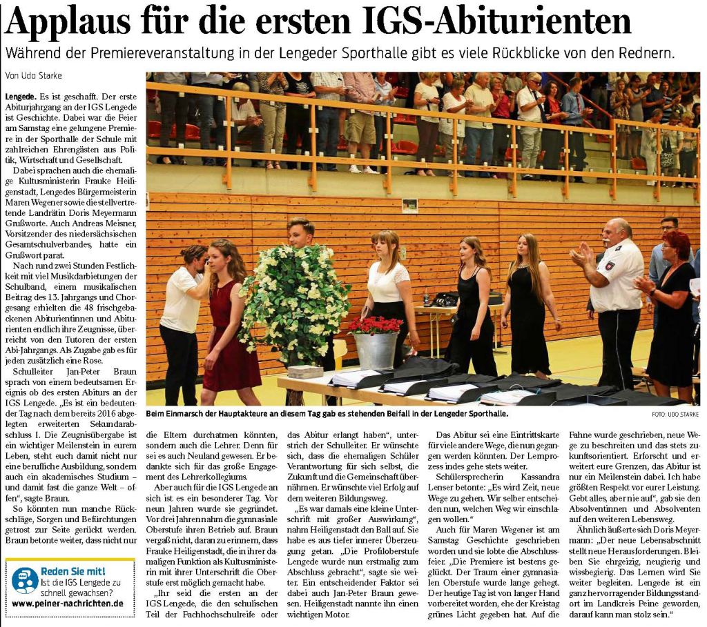 PN: "Applaus für die ersten IGS-Abiturienten"