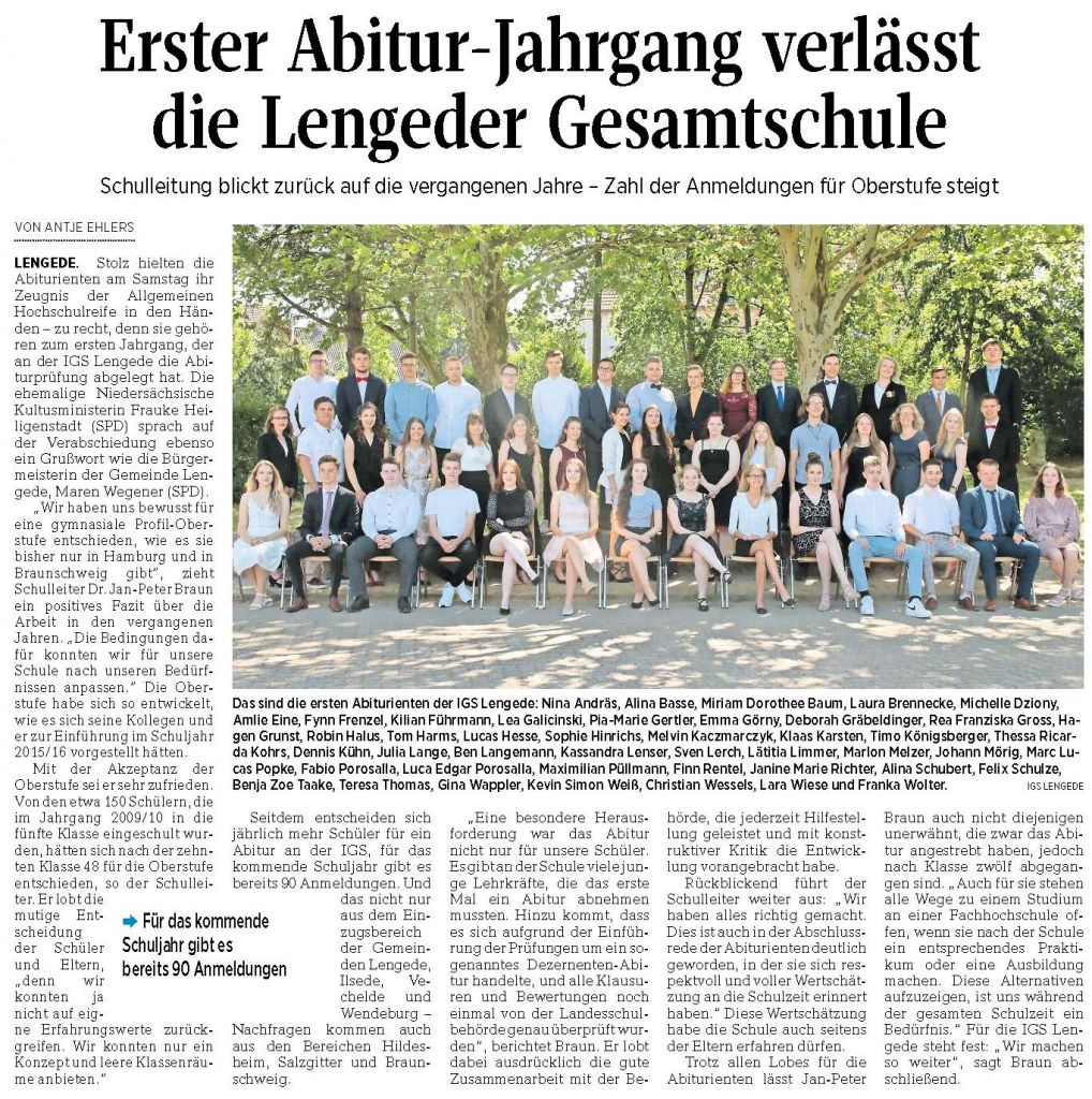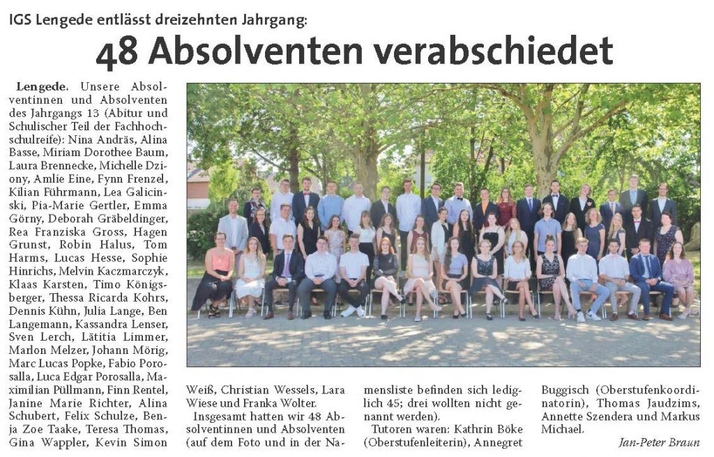 PAZ: "Erster Abitur-Jahrgang verlässt die Lengeder Gesamtschule"
