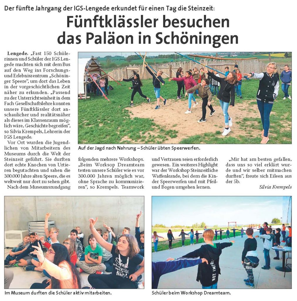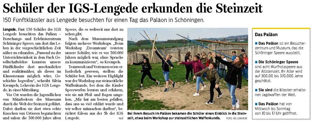 PAZ: "Lengeder IGS-Schüler erkunden die Steinzeit"