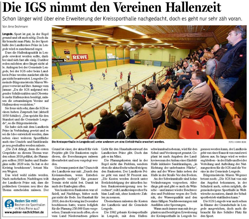 PN: "Die IGS nimmt den Vereinen Hallenzeit"
