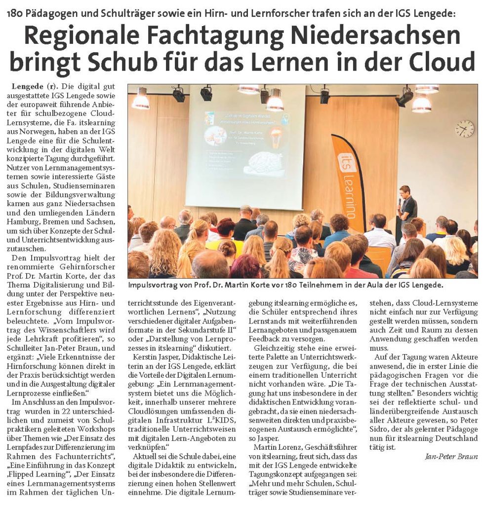 PAZ: "Lernen in der Cloud: Fachtagung an der IGS Lengede mit 180 Pädagogen"