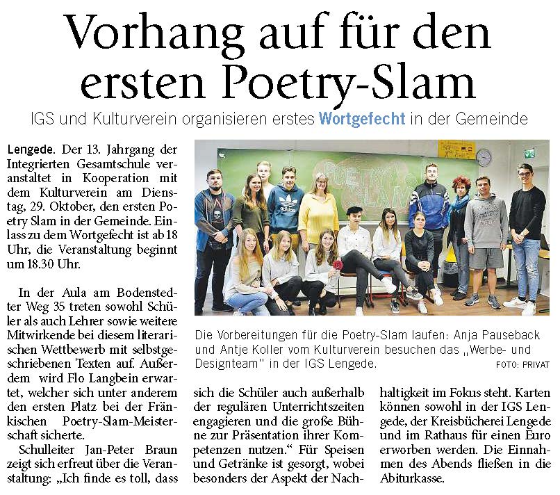 HSZ: "Vorhang auf für den ersten Poetry-Slam"