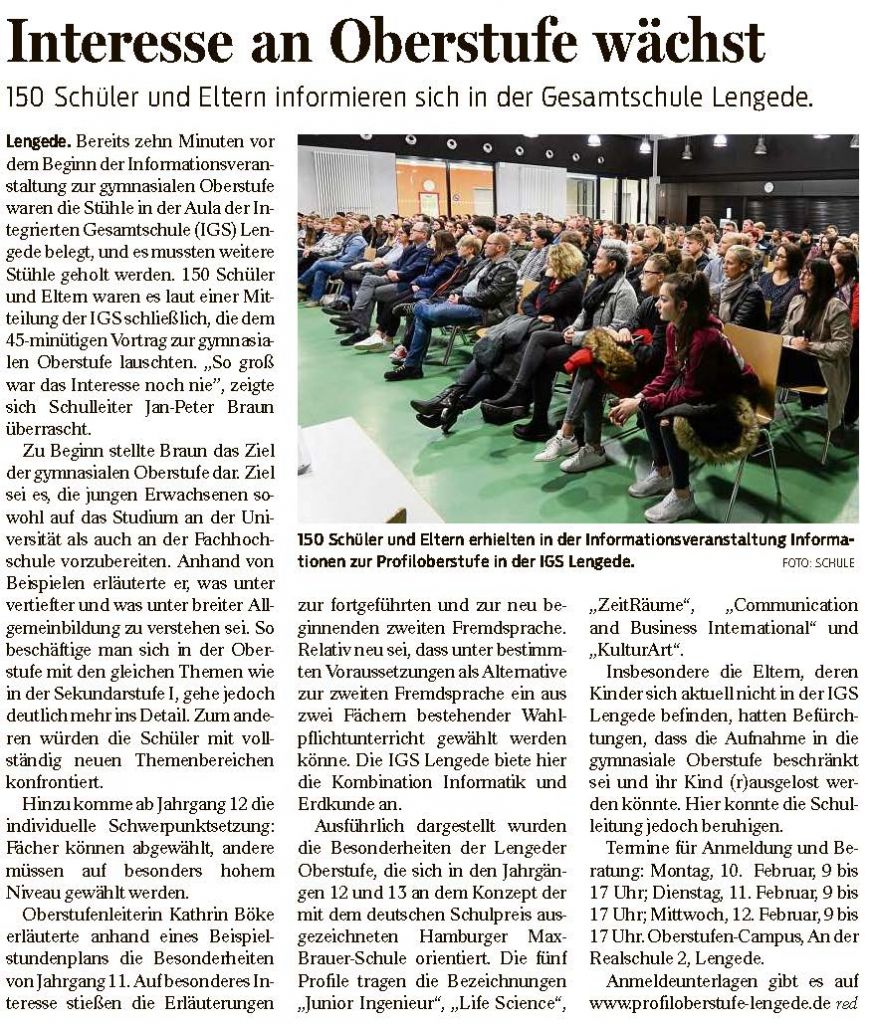 150 Schüler und Eltern informieren sich in der Gesamtschule Lengede.