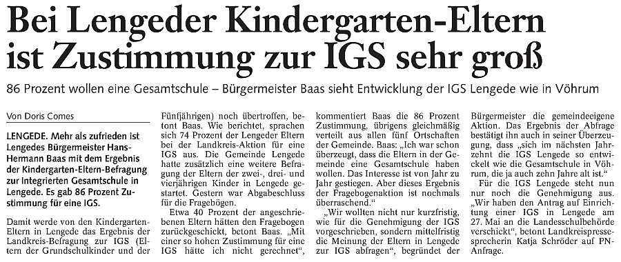 86% wollen eine Gesamtschule. Bürgermeister Baas sieht Entwicklung der IGS Lengede wie in Vöhrum.