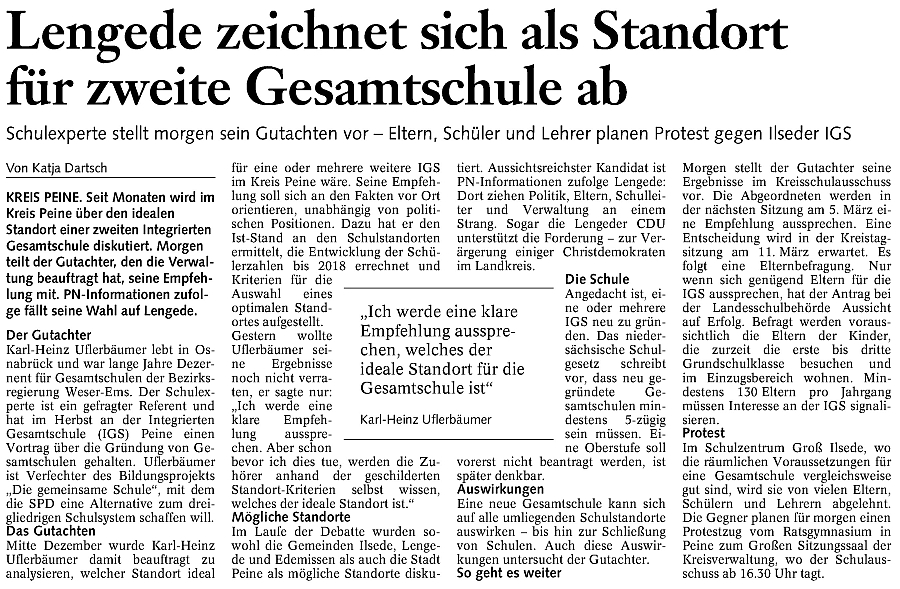 PN: "Lengede zeichnet sich als Standort für zweite Gesamtschule ab"
