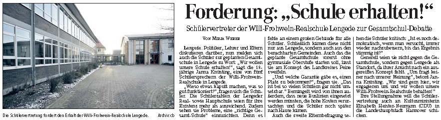 Schülervertreter der Willi-Frohwein-Realschule Lengede zur Gesamtschul-Debatte