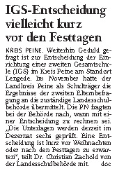PN: "IGS-Entscheidung vielleicht kurz vor den Festtagen"