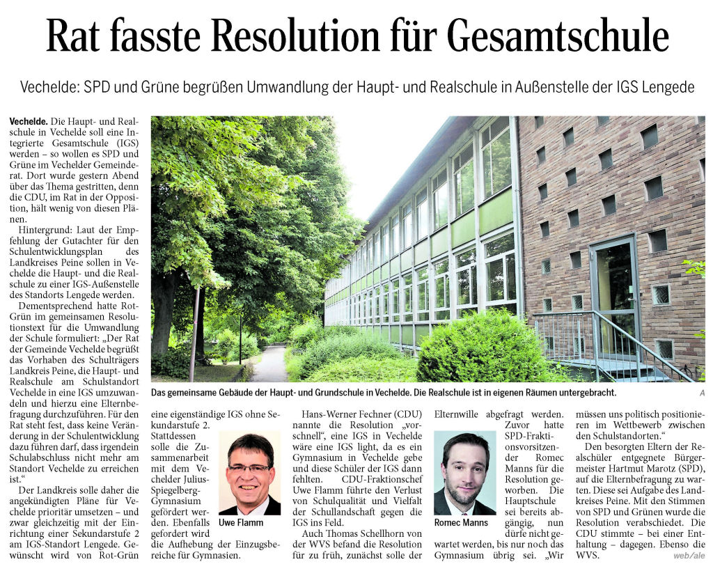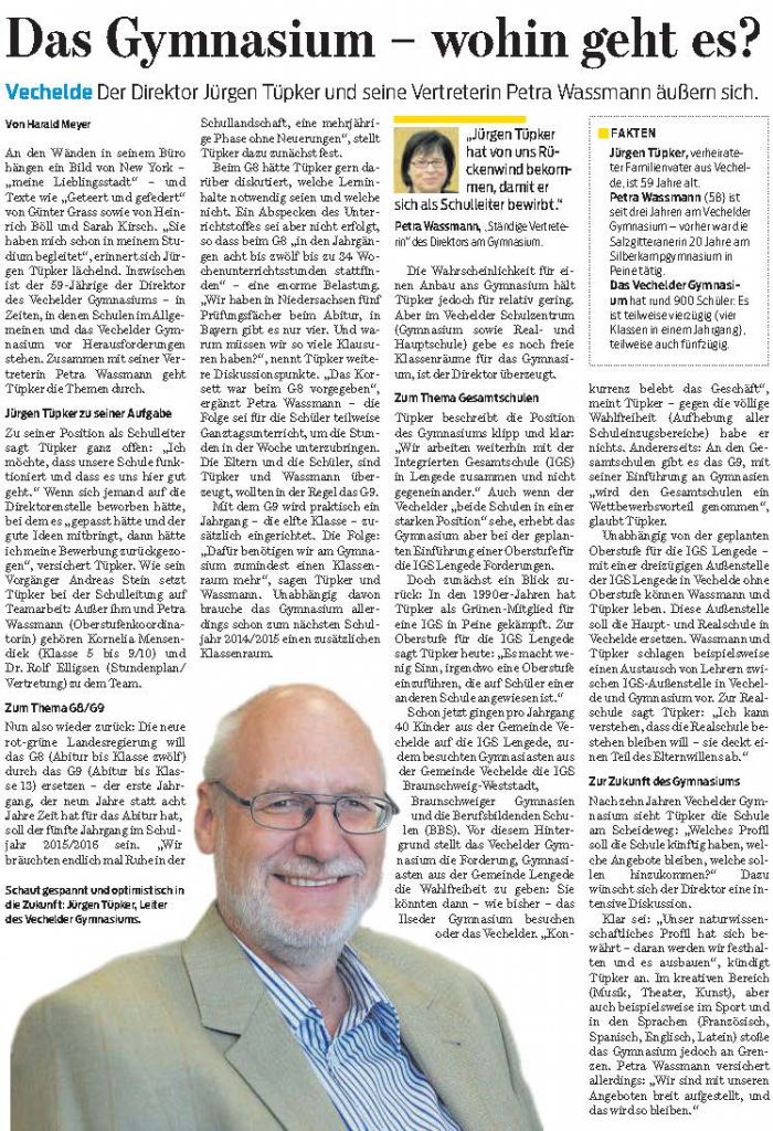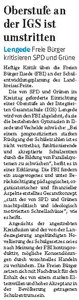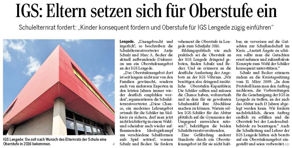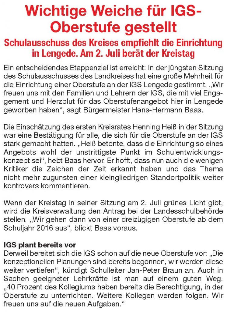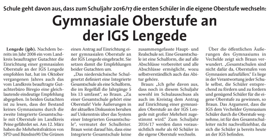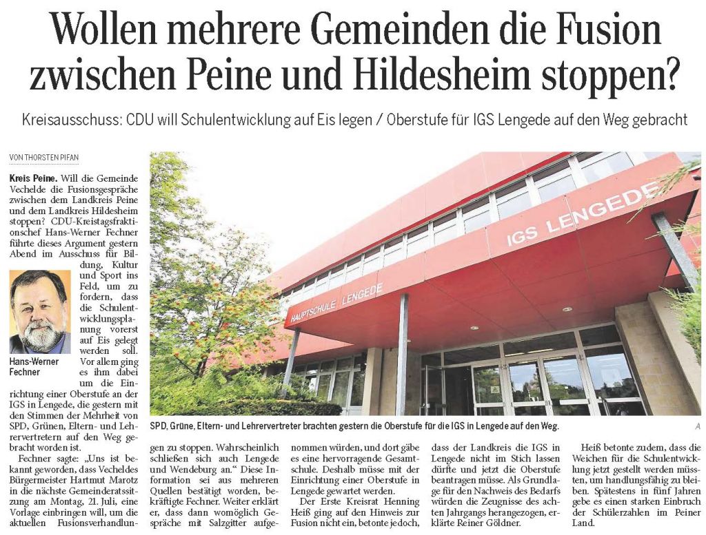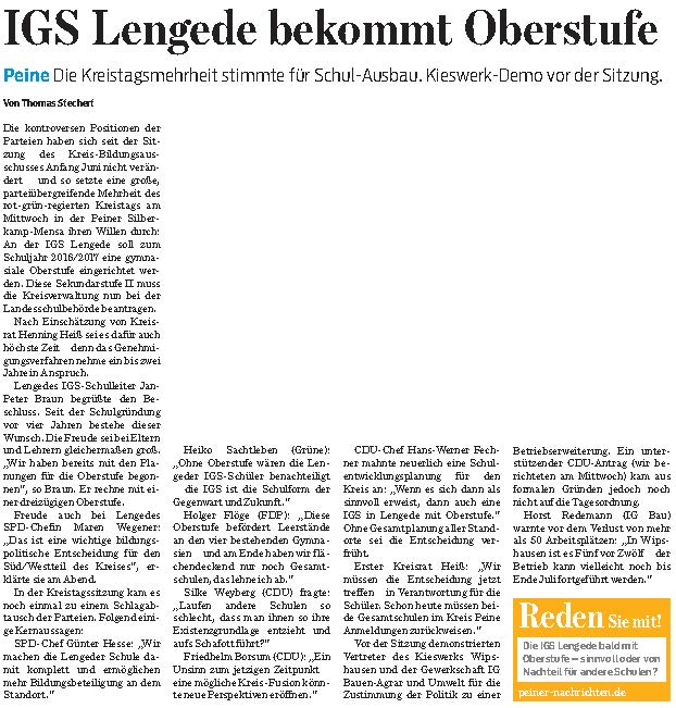 PAZ: "Heute entscheidet der Peiner Kreistag: Bekommt die IGS Lengede eine Oberstufe?"