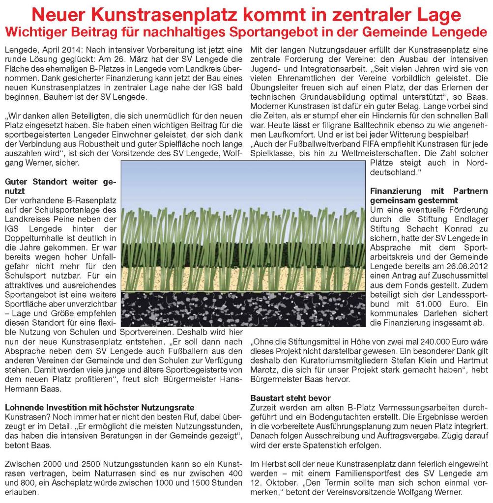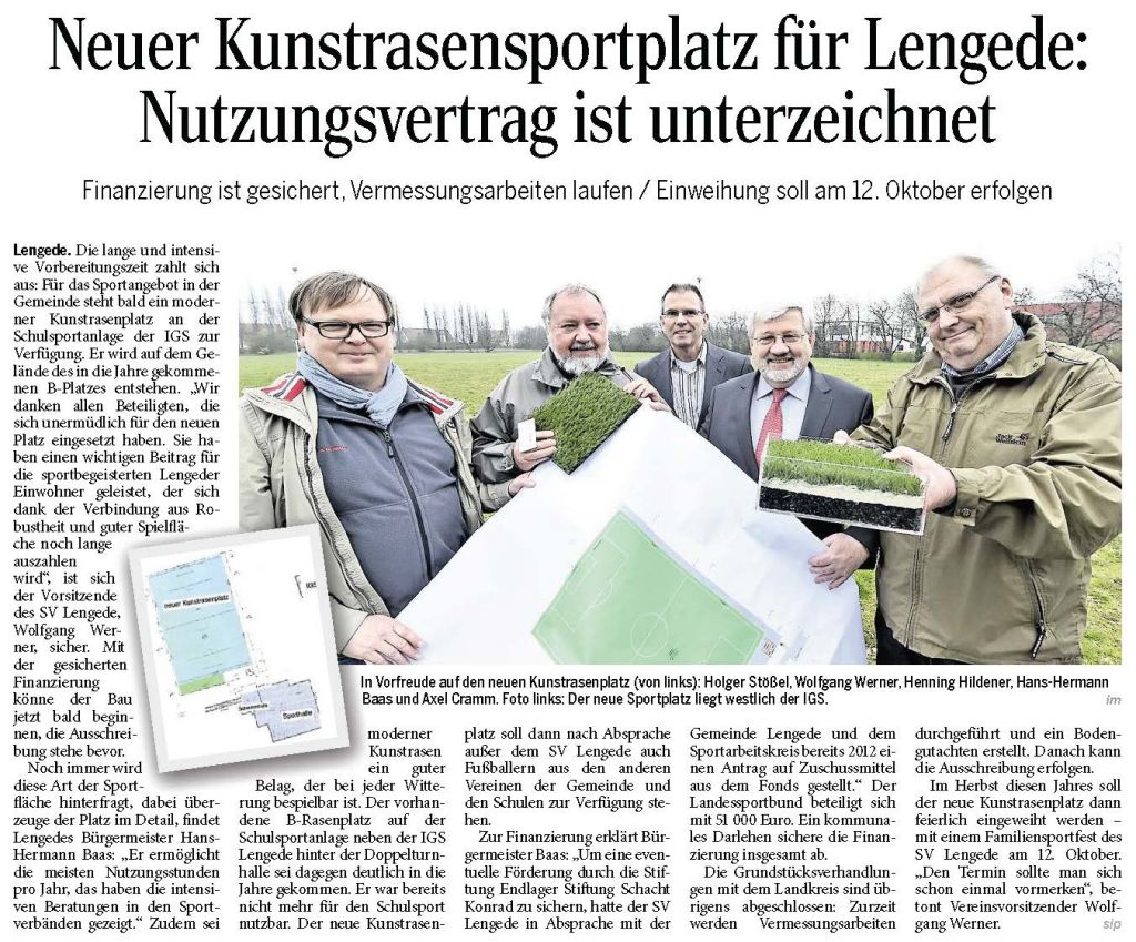 PN: "Der SV Lengede erhält dieses Jahr einen Kunstrasenplatz"