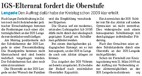 PN: "IGS-Elternrat fordert die Oberstufe"