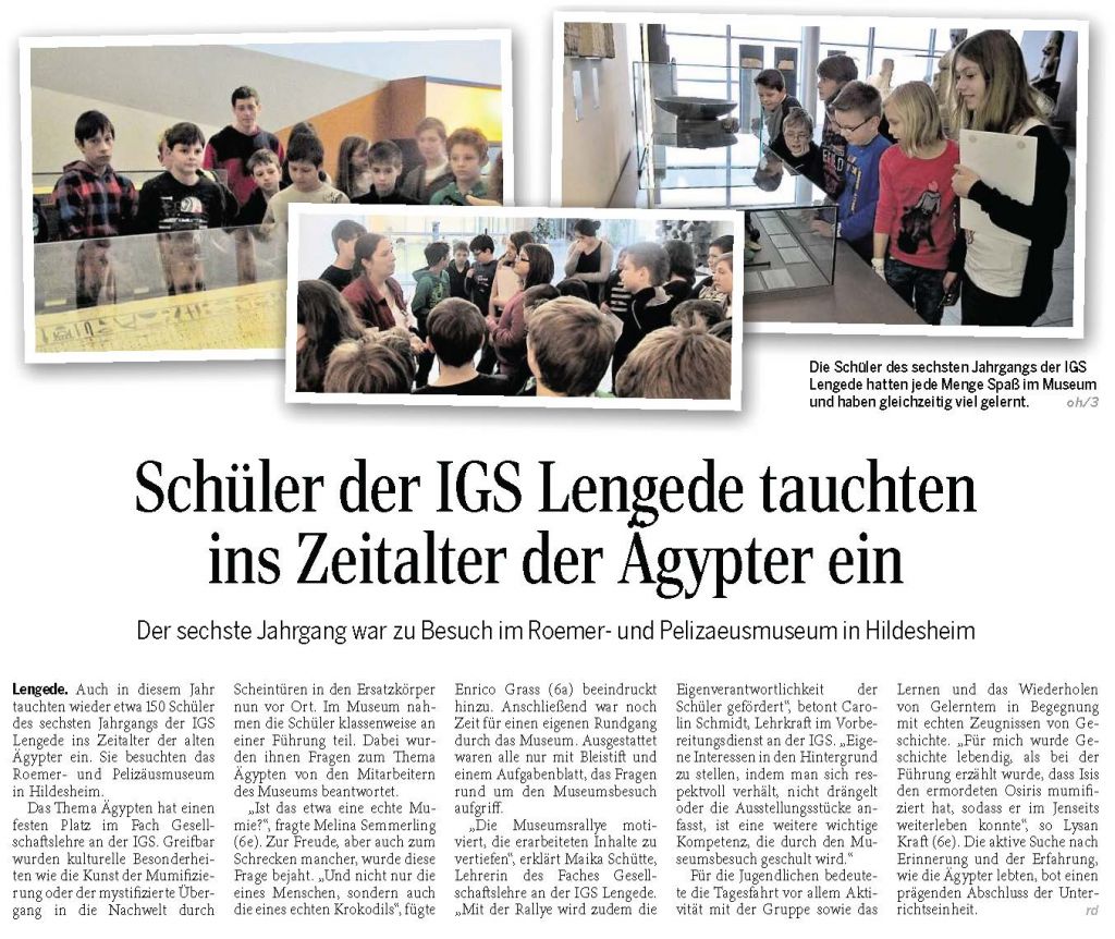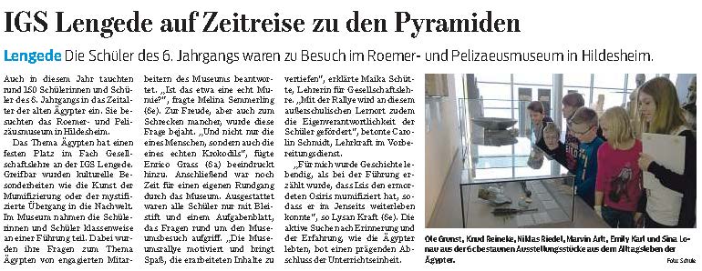 PAZ: "Schüler der IGS Lengede tauchten ins Zeitalter der Ägypter ein"
