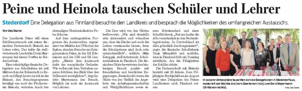 PN: "Peine und Heinola tauschen Schüler und Lehrer"