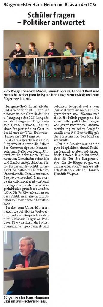 PAZ: "Kommunalpolitiker standen dem 8. Jahrgang der IGS Lengede Rede und Antwort"